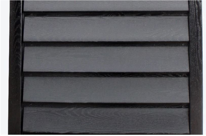 - Coating: 300 mu plastisol houtnerf motief, zwart, vergelijkbaar met RAL 9005.
